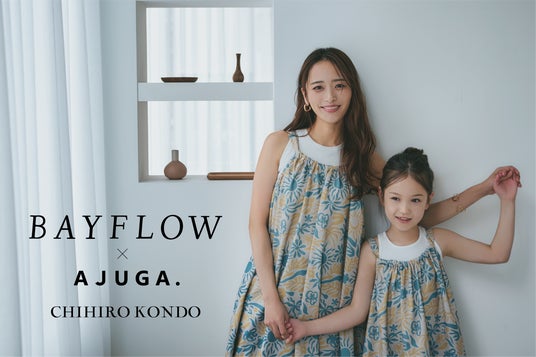 株式会社アダストリア(本部︓東京都渋谷区渋谷 2-21-1、代表取締役社長︓木村 治)が展開す るライフスタイルブランド「BAYFLOW(ベイフロー)」とモデルでタレントの近藤千尋さんがプロデュースする ブランド「AJUGA.(アジュガ)」が初のコラボレーションを展開し、親子でお揃いコーディネートができるウィ メンズとキッズアイテムが登場します。2025 年 6月10日(⽕)より公式WEBストア and ST(アンドエ スティ)で先行予約を開始します。また、2025 年 7月11日(金)よりBAYFLOW全店舗と公式WEB ストア and ST(アンドエスティ)、ZOZOTOWNにて通常販売をスタートします。
