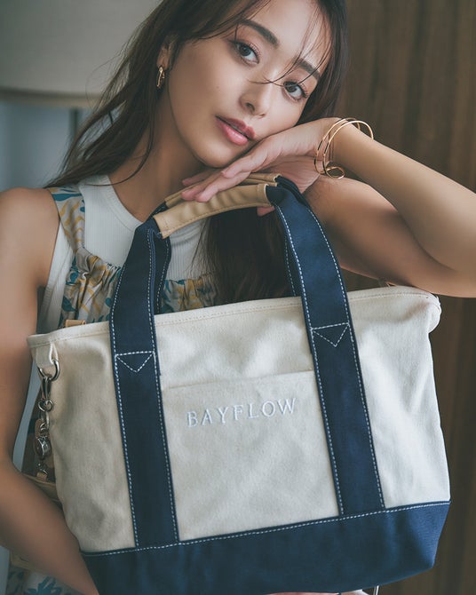BAYFLOWは 30~40 代の女性・男性に向けた、上品さ、清潔さ、ヘルシーさ、そして大人っぽさ を兼ね備えたアパレルや生活雑貨を展開するライフスタイルブランドです。きもちのいい自然の 風と、最先端のトレンドの風、そんなふたつの心地よさを感じられるような、健康的で、スタイ リッシュなライフスタイル、それが、BAYFLOWが提案する、シアワセのかたちです。