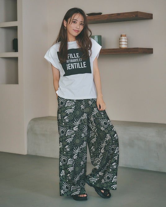 〈近藤さんコメント〉 穿き心地の良い素材で、動き易さを重視しました。おなじ素材・柄のワンピースとセットアップとして着ていただくの もおすすめです。