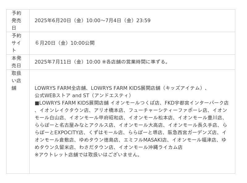 ■LOWRYS FARM×「ハローキティ」コラボレーションアイテム概要