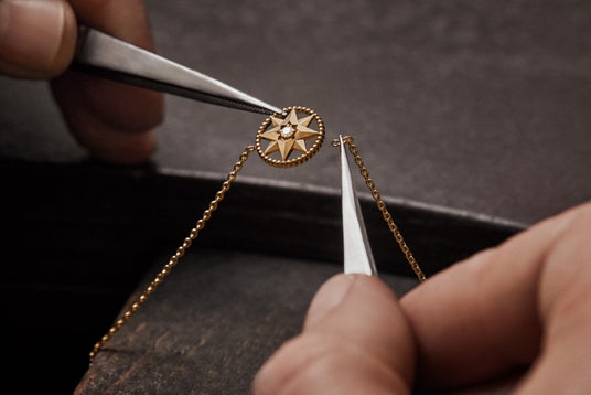 ヴィクトワール・ドゥ・カステラーヌの創造性豊かな発想力によってデザインされた「ローズ デ ヴァン」は、運命の神秘を信じたムッシュ ディオールとメゾンの本質に、詩情あふれるオマージュを捧げます。この度公開されたビジュアルでは、アトリエが誇る類稀な匠の技により、クリエイションが完成へと導かれる過程が鮮やかに捉えられています。