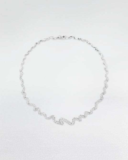 ミア・ゴスは、ホワイトゴールドにダイヤモンドをあしらった「クチュール ディオール」ネックレスとイヤリングを着用しました。