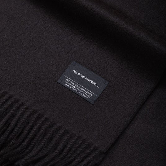 ブランドの中でも特別な繊維の一つである、ピュアブラックベビーアルパカのマフラー。