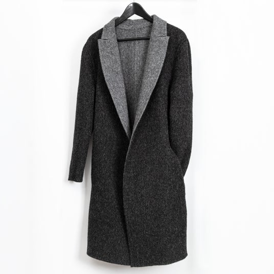 ポップアップでしかご覧頂けないアーカイブアイテム。カラゲという伝統的な手法を用いて作られており、ダブルフェイスの生地に裏地をつけず、さらにステッチなく仕上げることで、美しく且つリバーシブルで着用することができるロングジャケットは、非常に軽くて暖かいアルパカのダブルフェイス生地を最大限に生かしたデザイン。