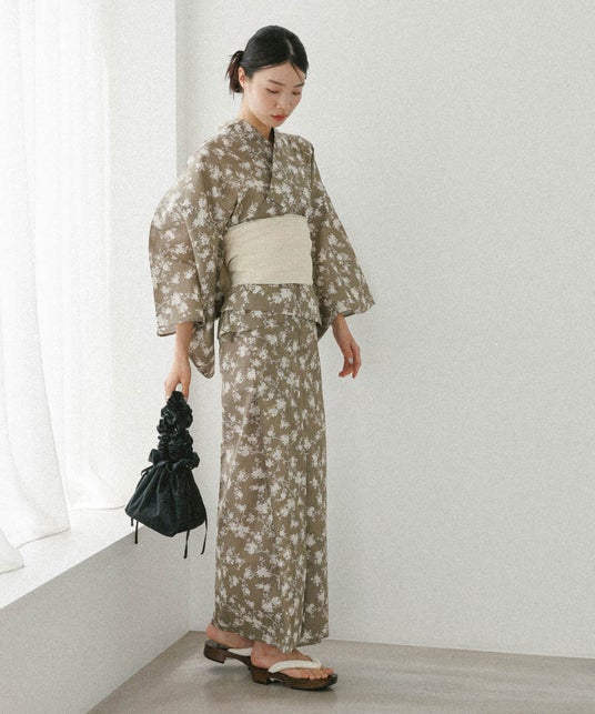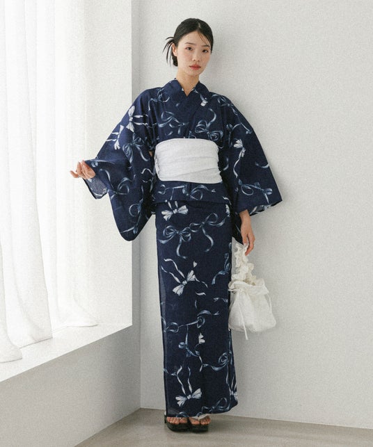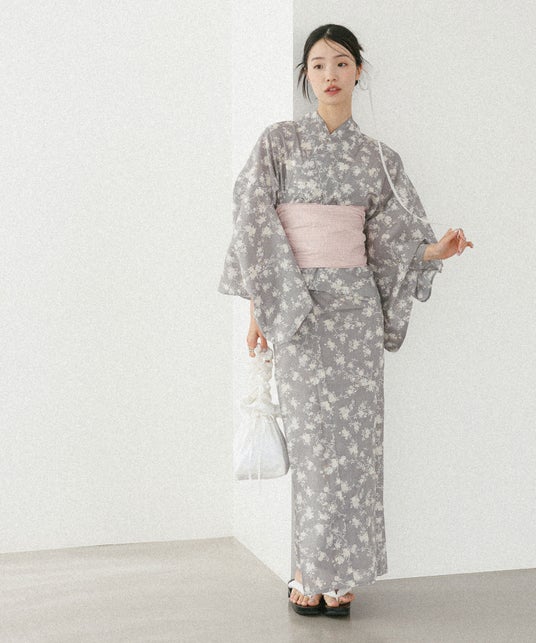 浴衣(セパレート)、帯、下駄のセット。二部式浴衣になっており、上下わかれているデザインなので一人で着脱が可能。