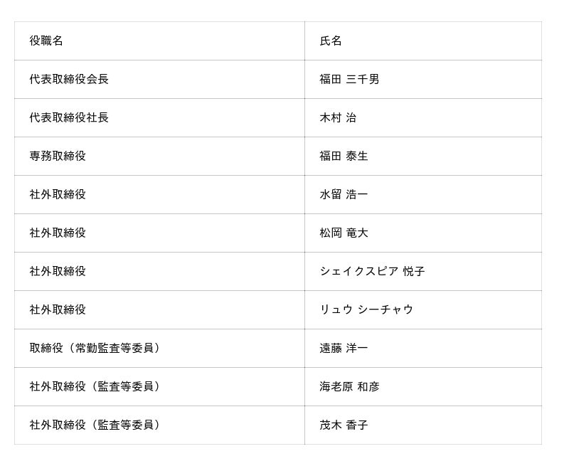 役員体制(2025年9月1日付):
