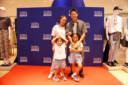 オープン当日はタイの人気歌手・俳優であるPopetornさんご家族にお越しいただき、テープカットとトークショーを実施しました。トークショーでは、ご家族全員でGLOBAL WORKの服を着てくださり、着用した感想や普段の洋服に対してのこだわり、店舗についての印象などお話しいただきました。気になった商品として、GLOBAL WORKの夏の定番服であるリッチクリーンTeeをご紹介いただきました。