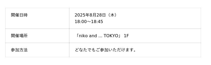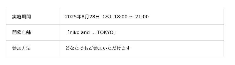 8月28日(木)には、旗艦店「niko and ... TOKYO」で一夜限りのローンチイベントを開催