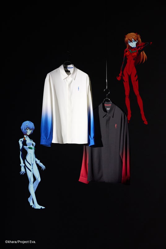 全 6 型の商品にはファン心理をくすぐるディテールが散りばめられています。シャツはレイとアスカの心情の変化をグラデーションで表現し、胸元にはプラグスーツ番号とそれぞれのキャラクターイメージの花を絡めたオリジナルのアイコンを刺繍。トラックブルゾンとパーカーはプラグスーツを彷彿とさせる切り替えを施し、カーディガンにはA.T.フィールドをイメージしたオリジナルボタンを使用するなどHAREならではのこだわりを感じていただけます。また、商品の全てにコラボ限定のネームタグを採用。こちらは碇シンジが使用しているSDATからインスパイアされたデザインとなっています。