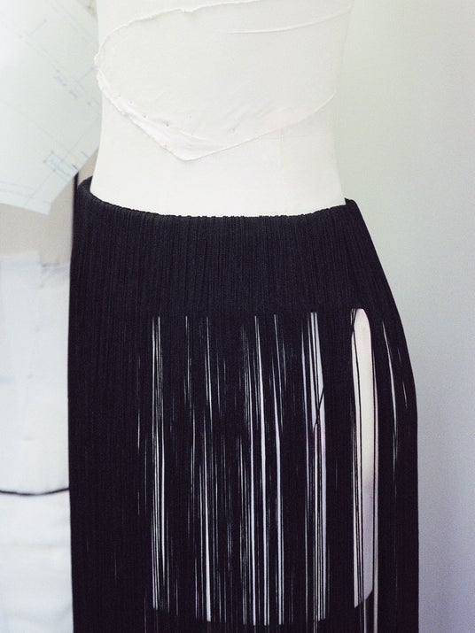 刺繍があしらわれたブラックのトップスとフリンジスカートも纏いました。