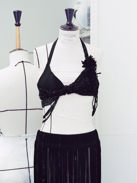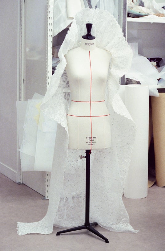 クロージングルックでは、レースとサテンのボディスーツにホワイトレースのケープを合わせたルックも披露しています。