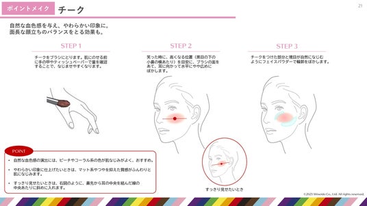 ●基本のベースメイク&ポイントメイクをパーツごとにアイテムの使い方とともに紹介 ~骨格感をやわらげ、肌の透明感・血色感をアップ~