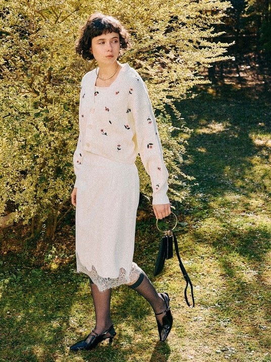 花刺繍ニットアンサンブル ¥13,200(税込) FREEサイズ