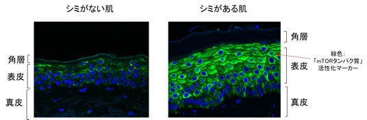 《シミのある肌で活性が高まっている「mTORタンパク質」を発見》