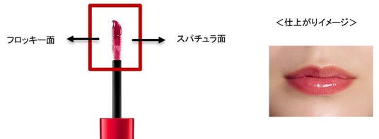 スパチュラ面:下に重ねた口紅の色をかき取らずに、自然なつやをまとえます。