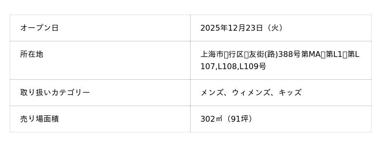 “Play fashion!”をミッションに掲げるアンドエスティHDグループで、40以上のマルチブランドを展開する株式会社アダストリア(本部:東京都渋谷区渋谷2-21-1、代表取締役社長:北村 嘉輝)のカジュアルブランド「GLOBAL WORK(グローバルワーク)」の中国大陸・上海1号店である「GLOBAL WORK上海虹桥前湾印象城MEGA店」を、虹橋空港からもほど近いニュータウンである前湾エリアの新規商業施設に2025年12月23日(火)オープンいたします。