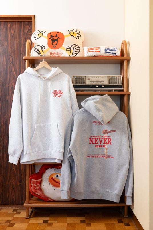 日本の食卓に欠かせない「納豆」のパッケージデザインを大胆に落とし込んだ、遊び心満載のフードパーカー