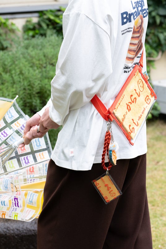 納豆に欠かせない“からし”をモチーフにした、遊び心あふれるサコッシュ。納豆パックに添えられたからしのデザインがポイントで、コンパクトながら必要なものがしっかり収まる実用的なサイズです。