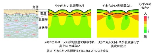 《やわらかい乳頭層にはメカニカルストレスから真皮を守る機能があった》