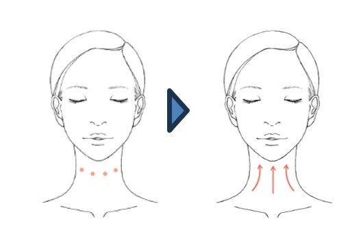 ●右手で左側、左手で右側の首に、下から上へやさしくなじませます