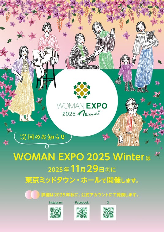 次回、「WOMAN EXPO 2025 Winter」の開催が東京ミッドタウン・ホールにて11月29日(土)に決定しました。詳細は2025年秋に、公式アカウントにて発表となります。
