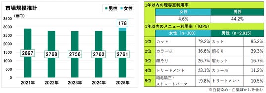 (※3)理容室は2024年まで男性のみに聴取していたが、2025年より女性にも聴取開始。前年差・前年比は、2025年女性分(178億円)を除く