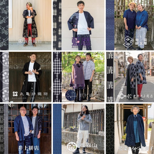 ◇HAORI(羽織)コーナー:坂田織物、藍染絣工房 山村健、丸亀絣織物、野村織物、久留米かすり 池田絣工房、藍染とみづま刺し子、儀右ヱ門 オカモト商店、藍暦 重松、井上絣店