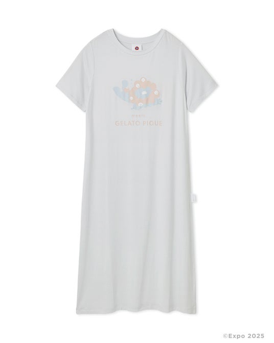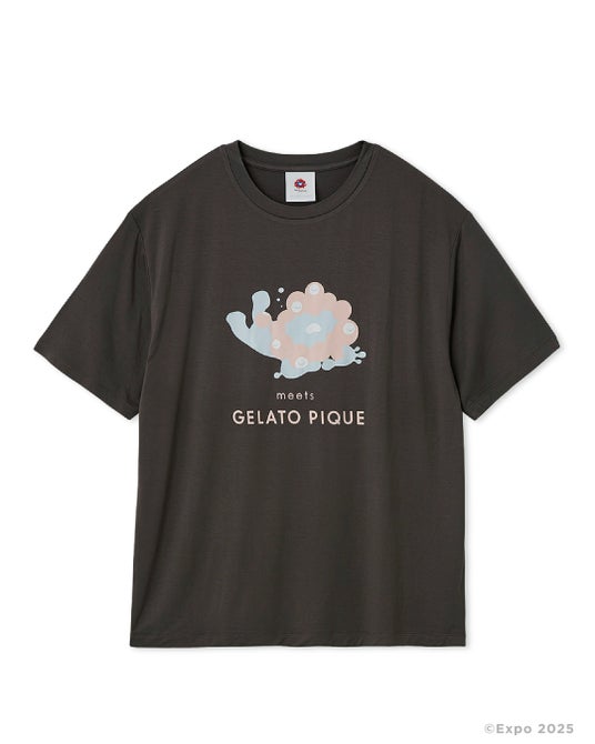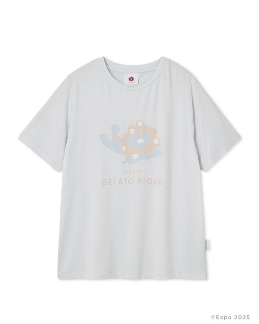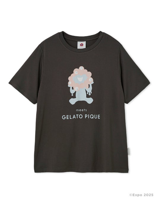 愛らしいミャクミャクの姿をジェラート ピケらしいパステルカラーのアートで仕上げました。接触冷感機能でなめらかな肌触りが心地よい、これからの季節に嬉しいアイテムです。カラー展開は、やわらかなライトブルーと、レディースとメンズがお揃いで着用しやすいカラーとしてチャコールグレーをご用意しました。