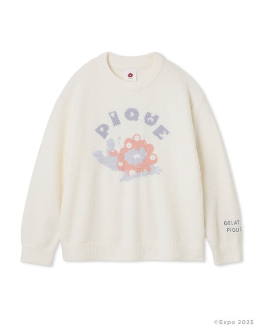 gelato piqueからは、”雨上がりに虹を見つけること”を特技とするミャクミャクをイメージし、ミャクミャクがジャガードで施されたプルーオーバーや接触冷感機能のあるTシャツ、肌触りの心地よい抱き枕やブランケットなど、ルームウェアからお部屋を癒し空間に演出する雑貨まで、計17型の限定アイテムが登場いたします。