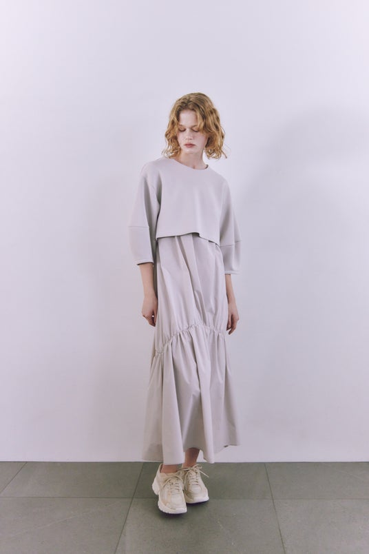 人気のダンボールトップス×キャミソールワンピースセットを、オープンを記念し限定カラーでご用意いたしました。ダンボールトップスはバランスの取りやすい短めの丈感にふわっとしたシルエットのパフスリーブで、ワンピースとの相性抜群。