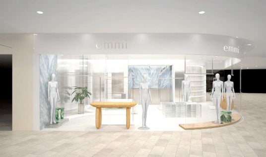 “クリアモード’'をブランドコンセプトに掲げる emmi より、環境に配慮したクリーンな素材を多用する‘‘サステナブルコンセプトストア’'が誕生。