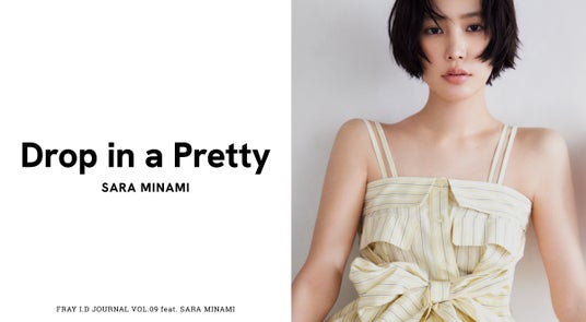 内面からもクリエイティブな輝きを放つ俳優の南沙良さんをミューズに迎え、FRAY I.Dとのセッションでお届けするジャーナル連載。Vol.9はテーマに「Drop in a Pretty」を掲げ、フリルやチュール、花柄、リボンを楽しむ“大人のカワイイ着こなし”に挑戦。南沙良氏の透明感が溶け合って、甘くも涼しげな女性像が完成しました。