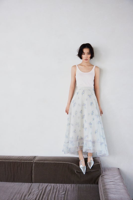 Tops ¥7,920 Skirt ¥24,200 Shoes ¥19,800