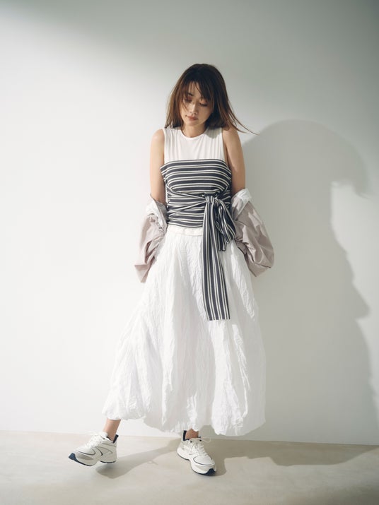 丸みのあるシルエットをプラスし、甘さを控えたモードなバルーンスカートに。