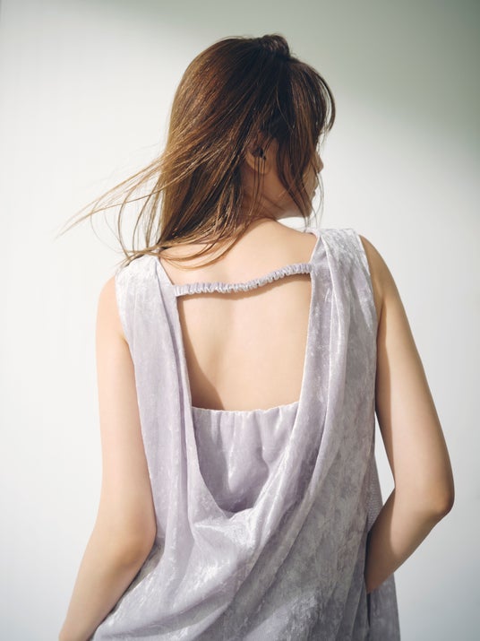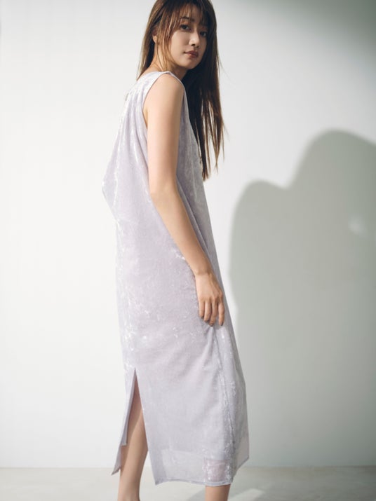 ベロアの光沢感とメッシュの抜け感が新鮮なワンピース。