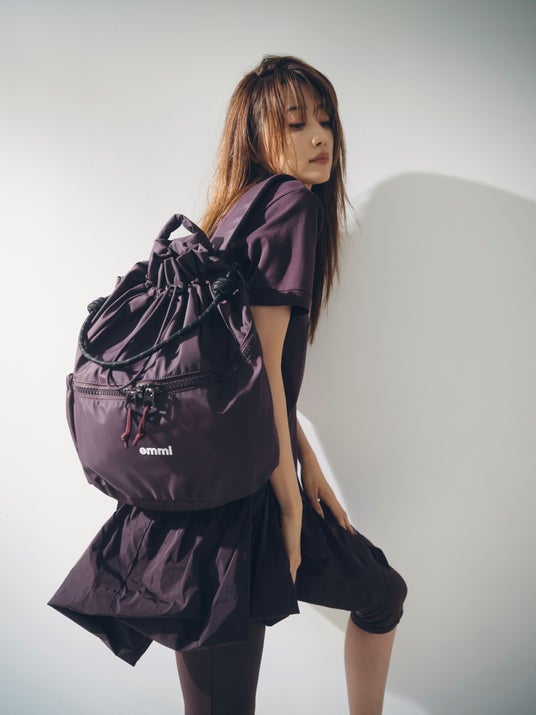 リュックサックとemmiらしいコードのショルダーハンドルで肩掛けのバックとして。