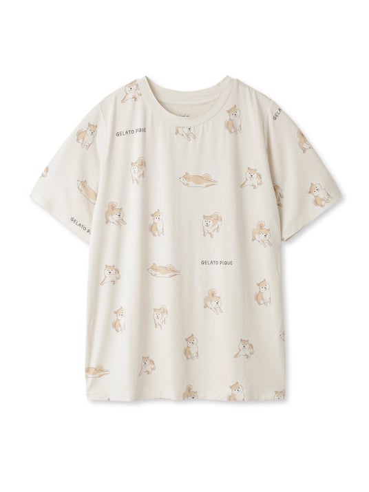 様々なポーズをした柴犬の総柄が入ったカットソーアイテムは、