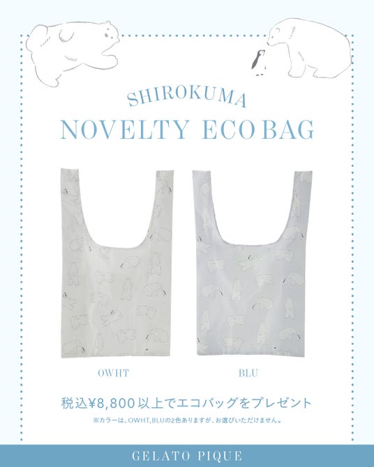税込¥8,800以上お買い上げの方にシロクマ柄エコバッグをノベルティでプレゼント。