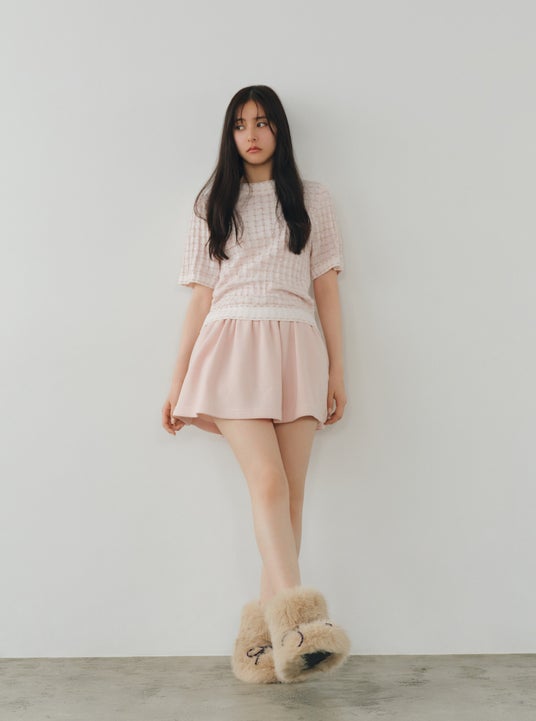 ふんわりと広がるシルエットがスカートのように見える、フェミニンでキュートなデザインです。