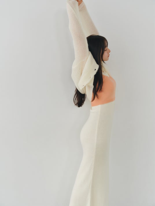 胸元と裾にはリブを施し、肌当たりの優しさにもこだわりました。