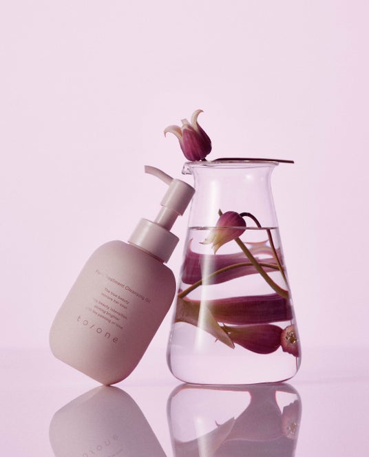 メイクでしっかりカバーしたゆらぎ肌も、一度ですっきり素肌にリセットするトーン初のクレンジングオイル。ベースに配合したトウモロコシ胚芽油は皮脂となじみやすく、毛穴の汚れを浮かせてオフ。さらに、花の恵みのメドウフォーム油*18を中心に、美容液にも使われるオイルを厳選ブレンドしました。クレンジングオイルだけに配合したセイヨウナシ果汁発酵液*19はAHAを含み、古い角質を柔軟に。メイクも毛穴汚れも溜めない、ゆらぎにくい肌へと導きます。
