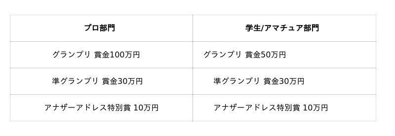 なお、プロ部門と学生/アマチュア部門の2部門で審査を行い、各部門の受賞者には賞金が贈られます。