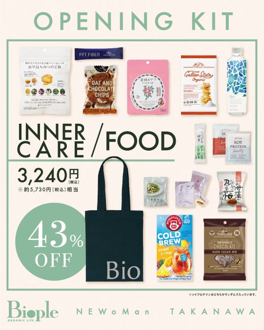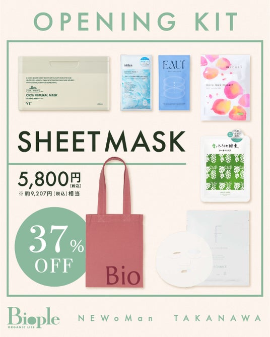 ニュウマン高輪店のオープンを記念して、税込9,207円相当のBiopleセレクトのシートマスクで美肌を目指すシートマスクキットと、税込5,730円相当のインナーケアアイテムが一気に試せるインナーケアキットの2種類をラインアップ。