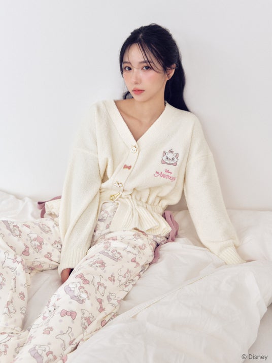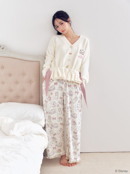 薄手の柔らかなフリース素材を使用した、マリーの総柄プリント入りパジャマ。
