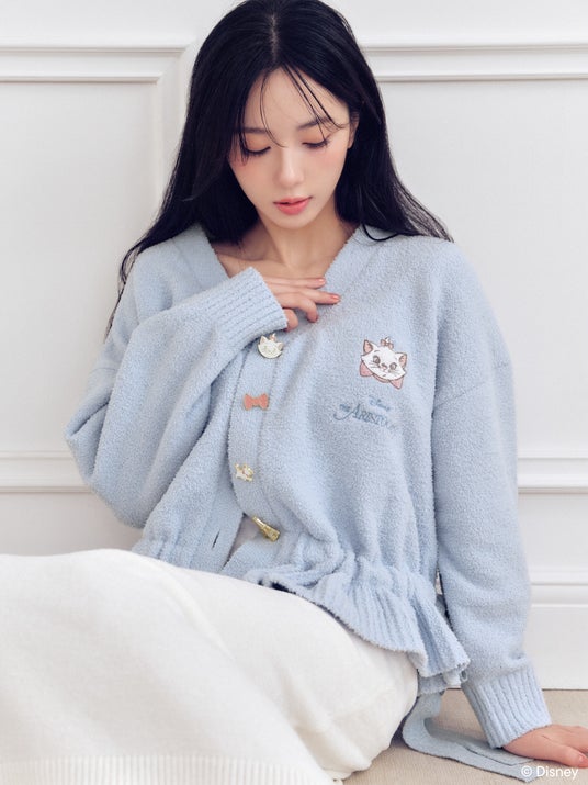カーディガンはギャザーで裾を絞るデザインがキュートな仕様に。