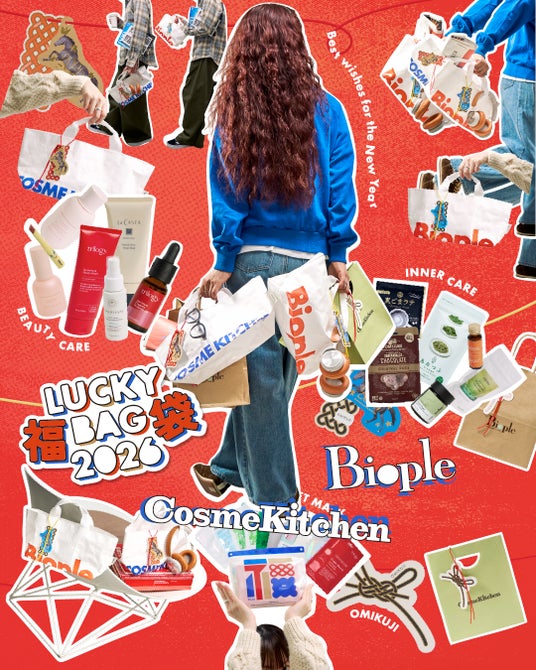 株式会社マッシュビューティーラボ(東京都千代田区/代表取締役社長 豊山YAMU陽子)が運営するナチュラル&オーガニックのセレクトショップ「Cosme Kitchen(コスメキッチン)」「Biople(ビープル)」は、6種類の限定福袋を2025年11月14日(金)11:00よりCosme Kitchen・BiopleのWEB STOREにて先行予約受付を開始し、2026年1月1日(木)※よりCosme Kitchen・Biople・Biopの各店舗にて発売いたします。