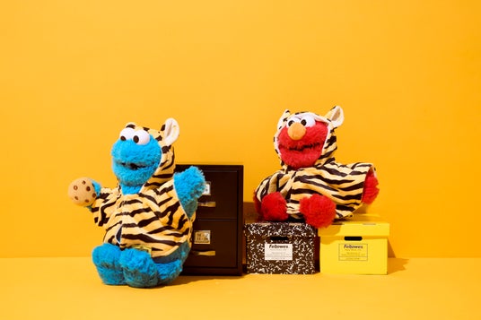 トラのコスチュームに身をまとったエルモとクッキーモンスターの姿が愛らしいデザイン。