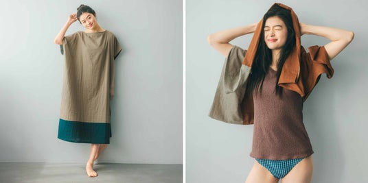 さらりとした肌心地の楊柳(ようりゅう)風生地で、海やプールでも街でも着られる水陸両用設計になっています。バストのボリュームをほどよくおさえるフラット構造になっていて、アンダーを縫い付けているので、アクティブに動いてもずれにくい仕様です。カラーは〈チャコールグレー〉〈アイボリー〉〈チョコブラウン〉と、夏のコーデに取り入れやすいカラー展開で、ボディーラインをひろいにくいシルエットも◎。