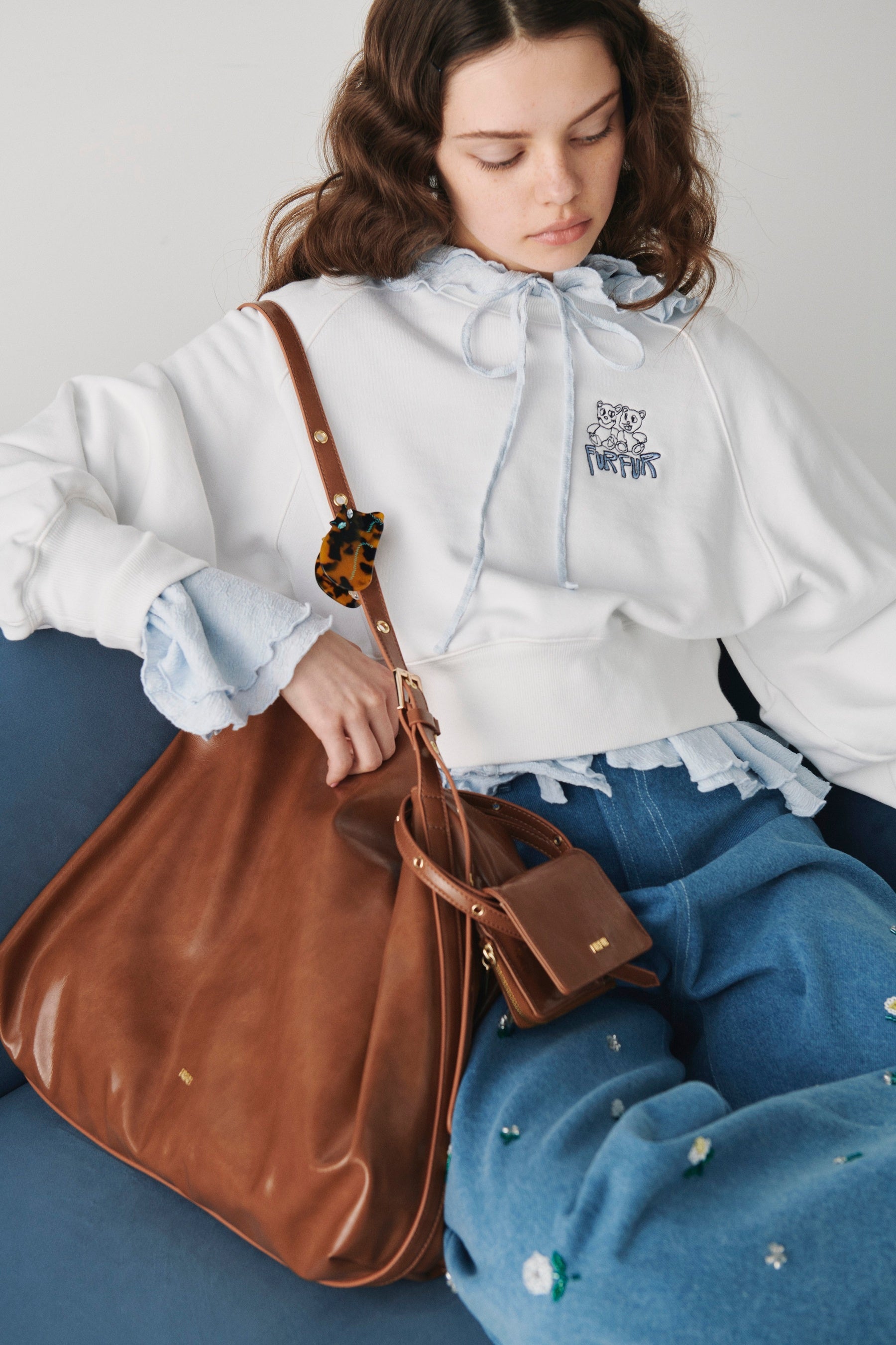 形はゆったりとしたラグランスリーブ、丈はショート丈でハイウェストボトムなどにも合わせやすく、様々なボトムと相性よくコーディネートできるスウェットです。