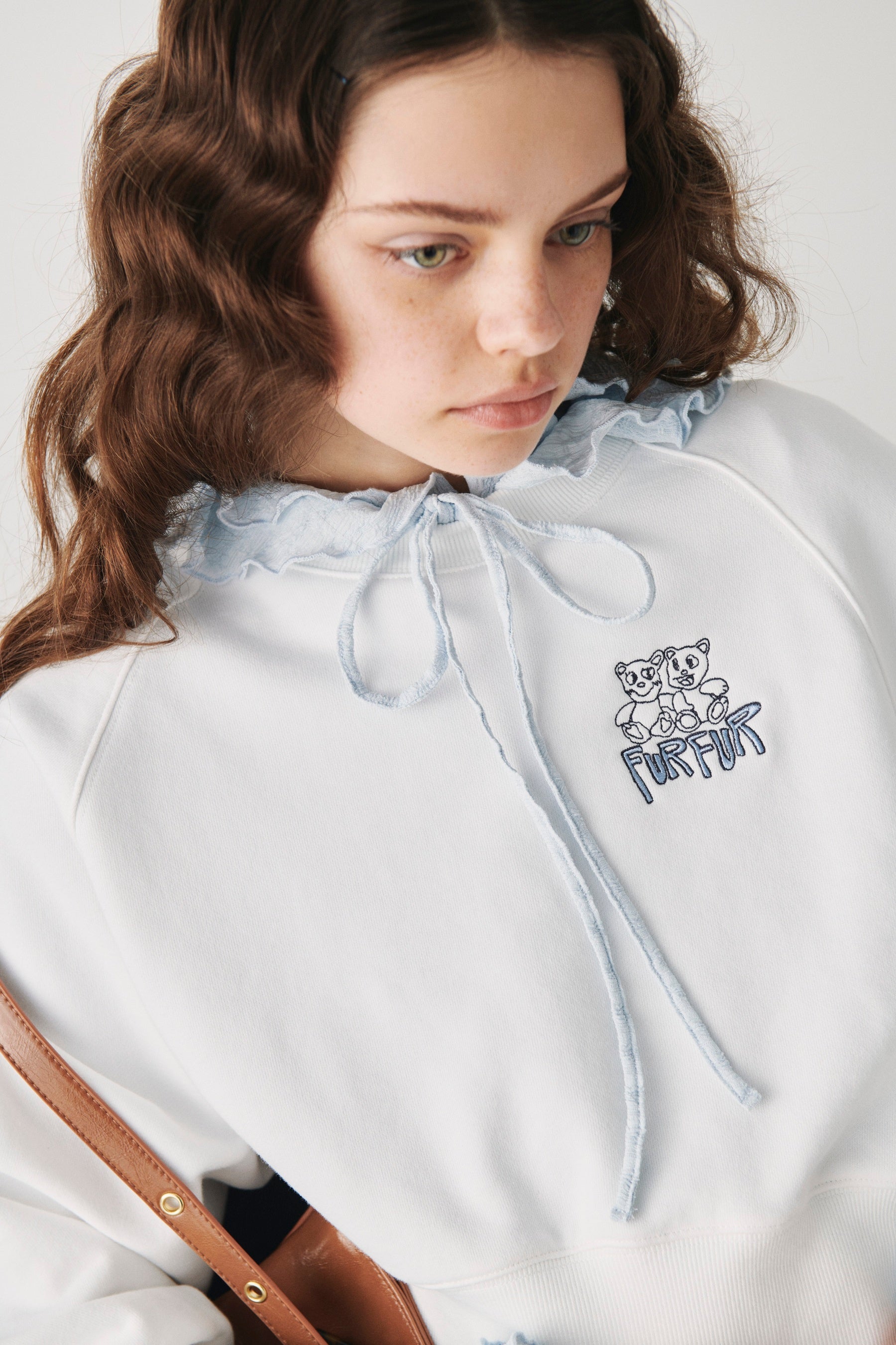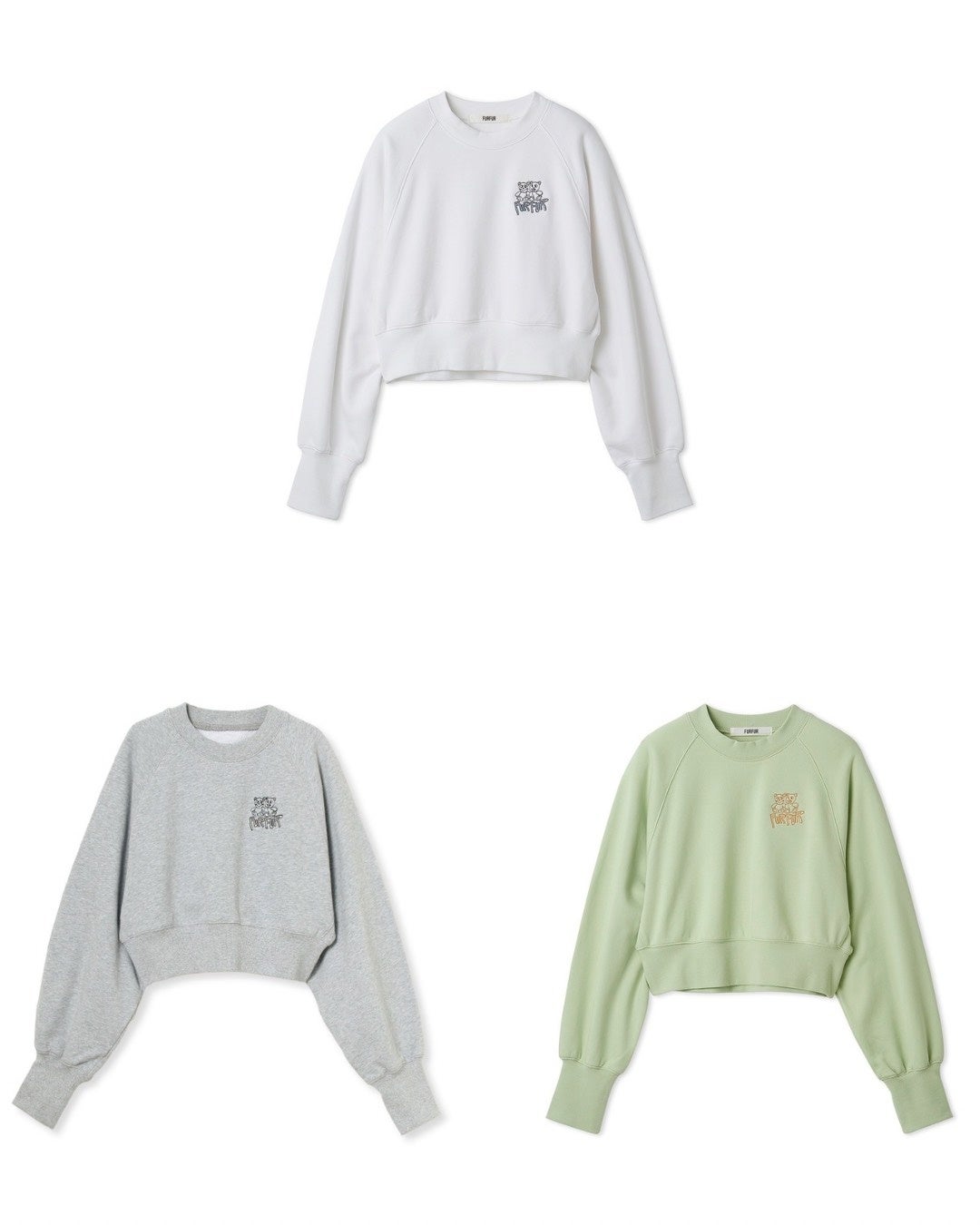 FURFURのオリジナルキャラクターの「スースキスー(ハート)」と「ナイト☆ティア」の仲良しコンビの刺繍をポイントにしたスウェット。